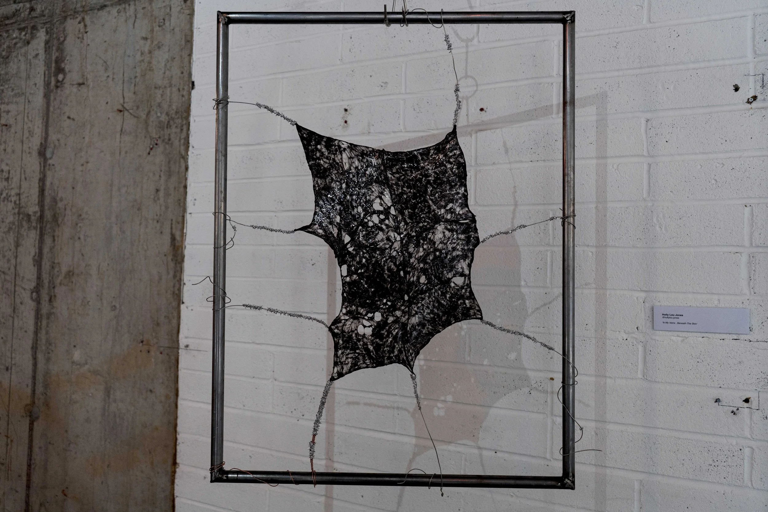The clogging feeling of someone getting into my body and under my skin; polluting my veins with the sticky tar of infatuation. The flesh is stretched; taut, tight and beginning to tear, suspended in this moment by metal thorns. This work acts as a representation of vulnerability and bareness to an uninterested and unrequited individual.